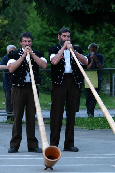 Every 2 weeks during the summer the Tourist Information Office organise a Guest Evening (Gäste Abend) where many of the talents of the villagers are on show. It is held in the school playground if fine or inside the school if wet. Typically you will see the traditional dance group, a swiss band, the jodel club, the Kandersteg brass band and alpenhorn players.