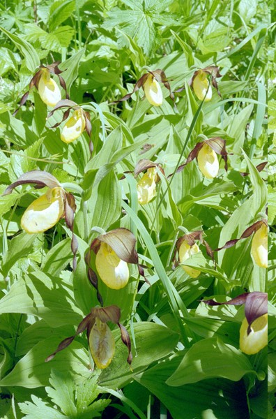 At the beginning of July you might find Frauenschuh orchids after crossing the wide river bridge, before you get to the base of the woodland climb in the Gasterntal: