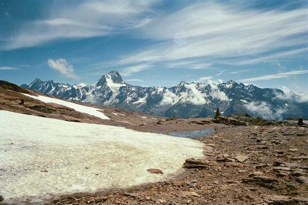 The view to the Bietschihorn range from the Lötschenpasshütte: