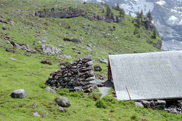 The farmhouse at Ober Bärgli is built to protect it against avalanche: