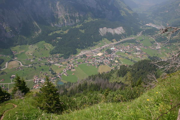 The view to Kandersteg from the steep path down from the Fisialp: