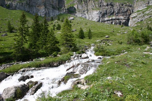 The walk is more interesting starting from Griesalp, rather than doing an out-and-back from Kandersteg but the train and Post Bus times are very unfavourable ( see http://www.fahrplanfelder.ch/fileadmin/fap_pdf_fields/2017/330.pdf and http://www.fahrplanfelder.ch/fileadmin/fap_pdf_fields/2017/31.220.pdf ). To get the 7:27 Post Bus from Reichenbach you need to catch the 6:27 bus (Mondays to Fridays only) from Kandersteg to Frutigen and change to the 7:06 train to Reichenbach, arriving at the Griesalp at 8:12. The 7:12 train from Kandersteg to Reichenbach will miss the Post Bus by 7 minutes!