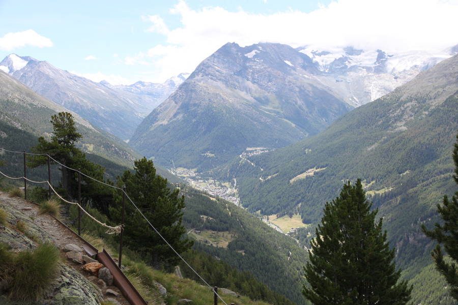 An interesting travel challenge providing a terrific view over Saas Fee and its surrounding peaks.
