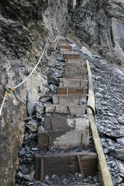 From afar, the way looks impossible but the path is excellent, providing rope hand-holds on the few occasions where it is particularly steep at the top. You cannot see the glacier until you actually reach the hut and you then find that you are looking down on it.