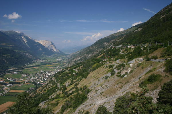 Looking down on the Rhone valley from the Höhenweg Südrampe: