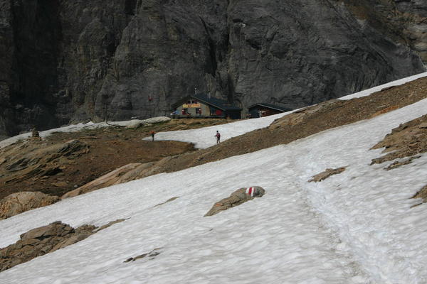 Although not quite as high as the Blümlisalphütte, the Lötschenpasshütte at 2690m feels higher, as you cross a snow field as you approach from the Lötschental valley and you cross the Lötschen glacier on the way down towards Selden.
